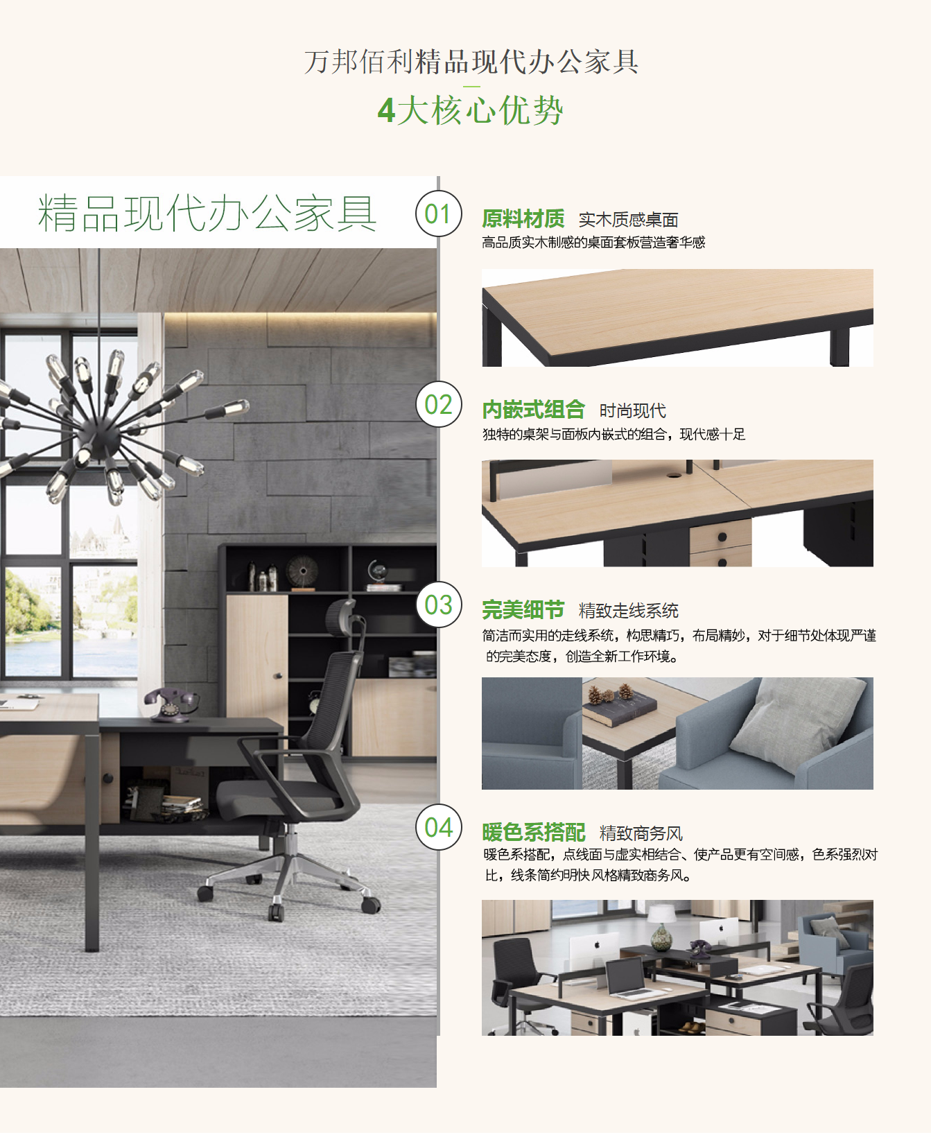 北京萬(wàn)邦佰利家具有限公司是一家專(zhuān)注于辦公家具生產(chǎn)、批發(fā)銷(xiāo)售的公司。銷(xiāo)售的產(chǎn)品有:班臺(tái)、經(jīng)理桌椅、會(huì)議桌椅、員工桌椅、文件柜、密集柜、視屏?xí)h桌、辦公沙發(fā)、學(xué)校家具、銀行家具、戶(hù)外家具、醫(yī)院家具等產(chǎn)品,公司自成立以來(lái)始終堅(jiān)持以人才為本、誠(chéng)信立業(yè)的經(jīng)營(yíng)原則,堅(jiān)持用企業(yè)文化提升企業(yè)核心競(jìng)爭(zhēng)力,使企業(yè)在發(fā)展中處于良好的形象.我公司主要服務(wù)于企業(yè)單位的家具定制服務(wù),為各大企業(yè)量身定做整體環(huán)境的家具設(shè)計(jì)全程服務(wù),我們的整體產(chǎn)品服務(wù)...